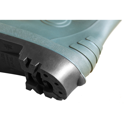 Gama RIVER de la marca Delphin se remarcă prin proprietăţi remarcabile, preţul accesibil şi o realizare de înaltă calitate. Pentru îmbinarea pieselor din materialul textil nylon 190D a fost utilizată cea mai modernă derivaţie a tehnologiei SONIC SEAM, în traducere liberă cusături sonice. Chiar dacă cusătura este în acest caz o expresie nu tocmai exactă, deoarece la utilizarea acestei tehnologii nu veţi vedea la suprafaţă cusătura clasică cu ajutorul firelor. Această tehnologie îmbină perfect straturile îmbinate iar cu ochiul liber veţi vedea numai o linie subţire a îmbinării şi după o folosire îndelungată care este foarte rezistentă la deteriorare, sau la pătrunderea apei. Datorită acestui fapt, aceste cusături 100% rezistente la apă sunt foarte populare şi utilizate la modelele profi. Nylon 190D trece în mod continuu şi hidroizolant în cizmele de cauciuc cu talpă rezistentă stabilă şi în cele mai pretenţioase condiţii. Firesc este şi ieşindul în zona călcâiului pentru o descălţare mai uşoară, sau agăţarea cizmelor după folosire. Datorită chingilor aceste cizme sunt foarte uşor fixabile iar masa scăzută a ansamblului face din ele un partener plăcut în timpul excursiilor pe parcursul anului! Gama RIVER este foarte rezistentă la suprafaţă la frecare! Masa aproximativă este de numai 2,2kg. Parte a pachetului este cu titlu GRATUIT un set practic destinat pentru lipirea unei eventuale deteriorări mecanice. Conţine adeziv şi 2buc rotunde de material textil nylon 190D cu diametrul de 5cm.Cizme pentru rău Delphin RIVER NR45