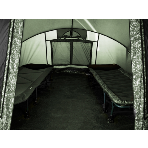 O adevărată navă amiral în categoria corturilor, dar de data aceasta în culoarea verde, cu un camuflaj exclusivist patentat de către Delphin sub denumirea C2G. Bivuacul C-3 LUX C2G este conceput pentru cei mai exigenți pescari. Construcţia tip garaj extra solidă cu trei arce asigură o stabilitate fără compromisuri în orice fel de condiţii climatice. Împreună cu materialul de cea mai înaltă calitate utilizat şi cusăturile lipite integral rezistă şi la furtuni puternice, vânt şi cantităţi mari de precipitaţii. Avantajul incontestabil al cortului este materialul cu modelul C2G, ceea ce va entuziasma în mod sigur fanii acestui camuflaj original. Datorită dimensiunilor cortului în acesta încap 2 paturi iar în cort mai rămâne un spaţiu generos pentru deplasare, dar şi pentru genţi şi alte componente ale dotării necesare pentru un sejur comod pe malul apei. În caz de nevoie spaţiul interior cuprind chiar şi 3 paturi. Subînţelese sunt şi două elemente de prindere pentru fixarea lansetelor, dar şi streaşina mare care oferă protecţie în faţa soarelui sau a ploii. În interior pe tavan sunt amplasate 2 cârlige pe care poate fi suspendată de exemplu o lampă. Cortul C-3 dispune de sistemul inovator CLIMA CONTROL, care a fost proiectat de compartimentul de design al mărcii Delphin. Acest sistem este compus de două aeratoare pe pereţii opuşi (deasupra uşii de acces şi deasupra ferestrei din spate). Datorită acestui sistem ingenios este posibilă asigurarea circulaţiei aerului în spaţiul interior al cortului în timpul când nu este posibilă aerisirea cu ajutorul ferestrelor mari. În mod sigur îl veţi aprecia mai ales în timpul nopţii când ajută în mod semnificativ la diminuarea condensului pe pereţii interiori. În plus, întregul sistem este manevrabil în mod simplu din interiorul cortului. Pentru cortul C-3 se poate cumpăra setul de acoperitoare din plastic pentru ferestrele din faţă (care sunt în mod standard cu plasă împotriva insectelor cu acoperitoare din pânză. De asemenea există posibilitatea cumpărării prelatei care măreşte rezistenţa termică interioară şi prin aceasta şi caracteristicile izolante ale mantalei propriu zise. Cortul are în pachet în mod automat pardoseala de bază, care este fixată cu un fermoar de calitate pe toată circumferinţa cortului. De acum încolo nu mai există riscul unor vizite nedorite ale rozătoarelor sau a pătrunderii clasice murdăriei în corturi în cazul prinderii cu scai! C-3 LUX C2G este un cort fără compromisuri care va satisface şi pe cei mai pretenţioşi pescari şi datorită căruia fiecare sejur pe malul apei va fi maxim confortabil. Parametri tehnici: Dim. exterioare: 300x320x175cm Înălţimea cortului: 175cm Lungimea streşinii: 60 cm Dim. transport cort: 130x30x30cm Masa cortului: 13kg Dim. transport prelata: 60x20x20cm Masa prelatei: 4kg