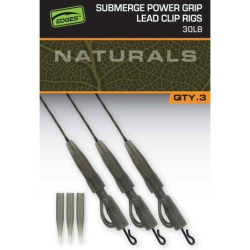 Fox Edges Naturals Submerge Power Grip Lead Clip Leaders sunt kit-uri de monturi leadcore, special concepute pentru confectionarea monturilor cu plumb pierdut. Firul lead-free beneficiaza de o rezistenta sporita la abraziune, se scufunda rapid, si este echipat cu o agrafa rapida, pentru a facilita procesul de inlocuire a monturii. De asemenea, prezinta si accesorii dedicate acestui tip de monturi, fiind deja pregatita pentru partidele de pescuit la crap. Culoarea ii ofera un nivel sporit de camuflare atunci cand pescuim in ape maloase sau abundente in vegetatie.