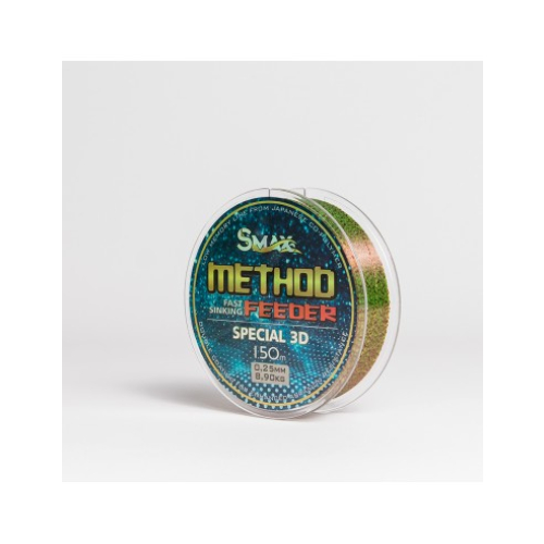 Monofilamentul SMax Method Feeder Special 3D, este un fir scufundator (sinking) recomandat pentru pescuitul la feeder sau match, avand o culoare gandita special pentru a nu trezi suspiciuni pe patul de nada.Ca si caracteristici principale, putem discuta despre: scufundarea rapida, elogantia redusa, astfel chiar si cea mai fina trasatura va fi sesizata.Â