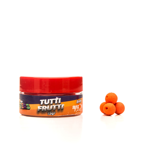 Momeala critic echilibrata (slow sinking), cu forma rotunda si deja agurita, ideala pentru perioadele in care pestii se hranesc apatic. Cu o densitate apropiata de cea a apei, au rolul de a se ridica de pe substrat la orice miscare a apei, devenind astfel usor de aspirat de catre crapi.WAFTERS TUTTI FRUTTI 8mm 15g